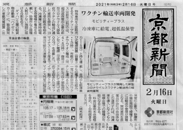 2月16日京都新聞朝刊に、超小型ワクチン輸送車が掲載されました