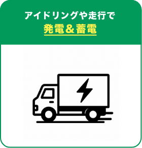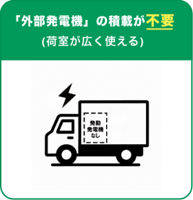 ・大電力を必要とする場合でも、車両エンジン発電とバッテリーを併用することで、安定した電力が供給できます。(例:大型電動ウインチの作動)